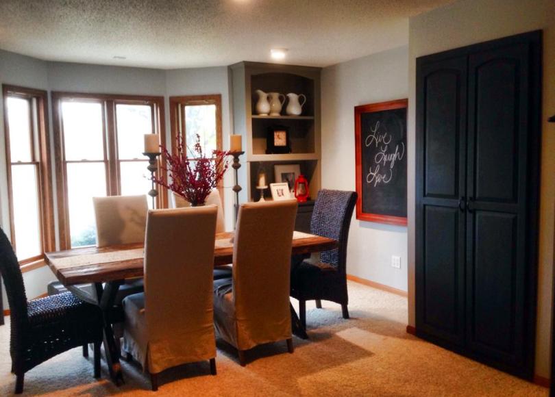 The dining room of The River House was actually so perplexing with its soaring oak built ins and oak finishes that the first time we walked into this room I literally said out loud, “What IS this room?” The house was empty at the time so I had no dining room table to give me a big fat hint and the only lighting was recessed (a chandelier would have been a clue). I didn’t know if it was a home office in need of a door or a second oddly shaped family room.