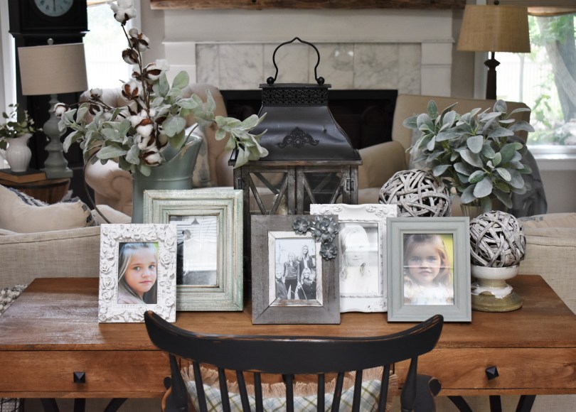 In addition to displaying black and white favorites on our walls, I have several framed family photos throughout our home.